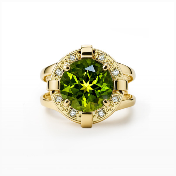 Zlato 14kt (585/1000), olivín, brilianty (kvalita Si)